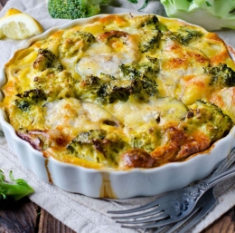 4. V skledici razžvrkljamo jajca, dolijemo mleko, dodamo maskarpone in parmezan. Posolimo, popopramo in dobro premešamo. S to mešanico prelijemo brokoli.