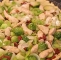 piščančje prsi (1 kos) 20 dag pora 25 dag brstičnega ohrovta 4 polovičke pekočih posušenih paradižnikov 2 stroka česna sol poper