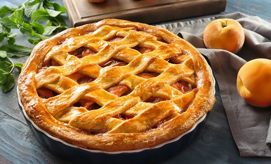 5 breskev sok polovice limone 4 žlice rjavega sladkorja 2 žlici gustina 1 vaniljev sladkor cimet in muškatni orešček 1 jajce