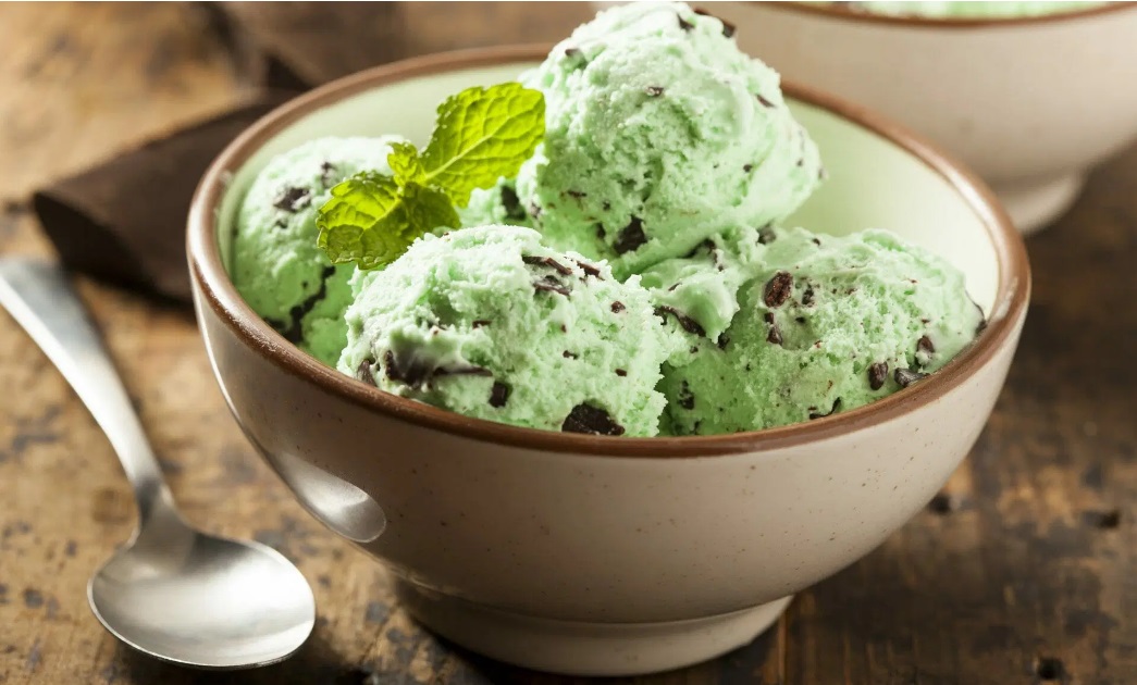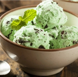 4 Nekaj metinega mleka (cca. polovico) dodamo rumenjakom in mešamo, da se sestavine povežejo. Zmes vlijemo v preostalo mleko, dodamo smetano in ves čas mešamo in segrevamo. Po 3 – 4 minutah se bo zmes zgostila. Paziti moramo, da ne pride do vretja, saj se lahko vsebina sesiri. Zgoščeno zmes damo v drugo posodo in ohladimo. Med hlajenjem večkrat premešano. Čez noč jo pustimo v hladilniku.