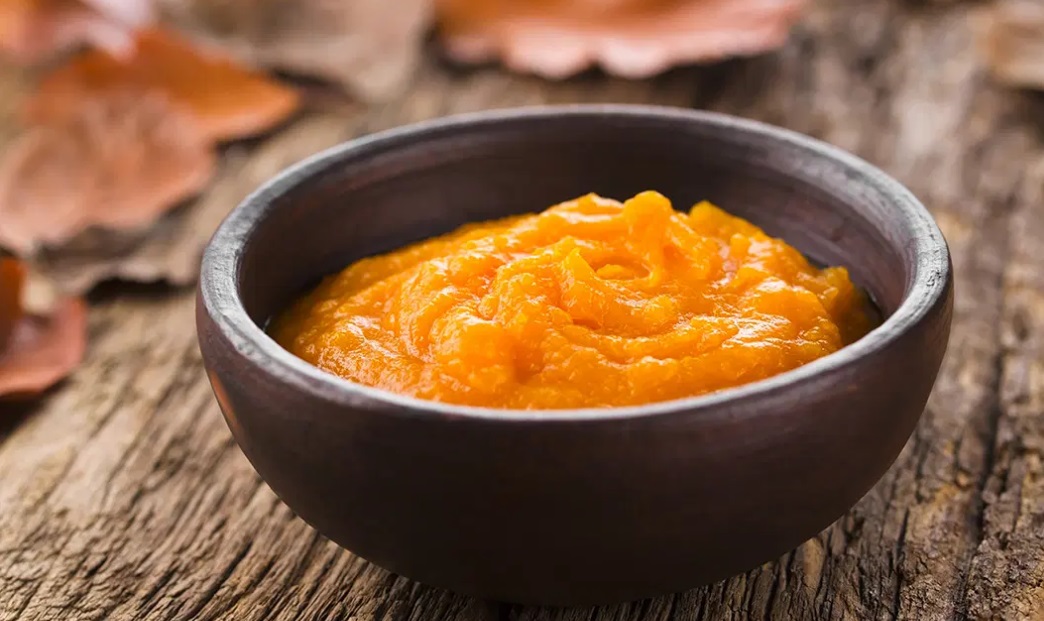 6...Katerikoli način termične obdelave bomo uporabili, nadaljnji postopek je vedno enak. Še tople koščke buče damo v visoko in ozko posodo in zmiksamo v gladek pire. Če nam ostajajo koščki, pire pretlačimo čez gosto cedilo.