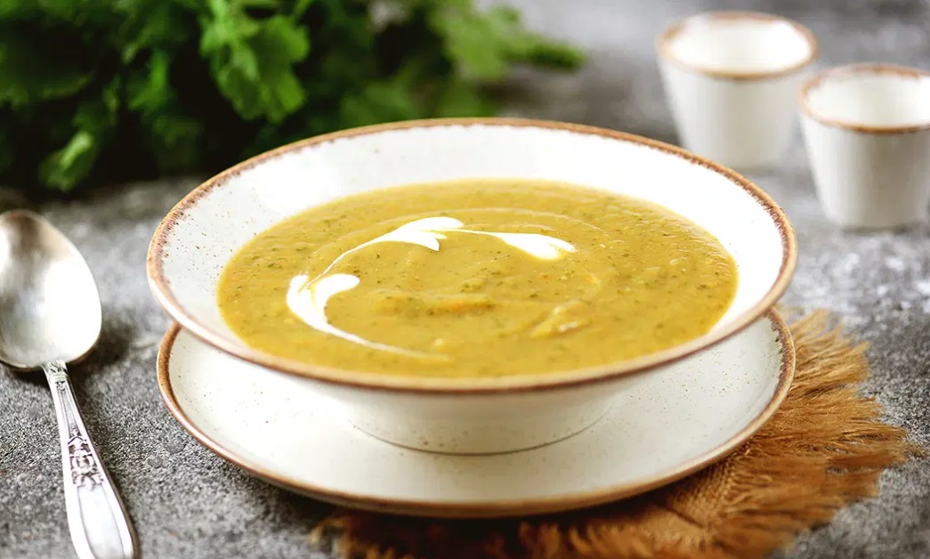 3 Približno 5 minut dušimo na zmernem ognju, nato dolijemo en liter jušne osnove, vse začimbe, po potrebi dosolimo in dodamo še na kocke narezan olupljen krompir. Kuhamo približno 20 minut, da se vsa zelen zmehča. Juho zmiksamo s paličnim mešalnikom, vmešamo še nekaj žlic kisle smetane in takoj postrežemo.