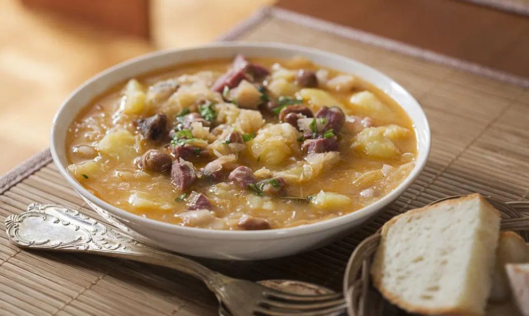 4 Če je jota preredka, iz lonca vzamemo malo krompirja in fižola, ju spasiramo in vrnemo v lonec. Jota bo še boljša naslednji dan.