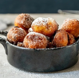 6 Z žličko zajemajte majhne kroglice testa in jih spuščajte v vroče olje. Cvrite, dokler ne postanejo zlate rjave barve, in jih nato vzemite iz olja ter položite na papirnato brisačo, da se odcedijo.