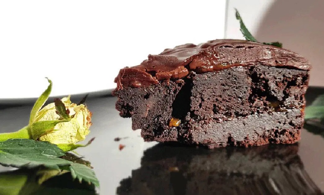 2 V stekleno skledo nalomimo temno čokolado, dodamo maslo in oboje stopimo nad vodno kopeljo. V čokoladno zmes vmešamo še sladkor (količino sladkorja lahko tudi zmanjšate, ne bo nič narobe), sol in vaniljo. Na koncu na hitro v maso vmešamo še stepena jajca in kakav. Zmes vlijemo v pekač in pečemo v segreti pečici 25 minut.