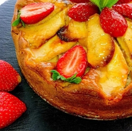 Pečeno pustimo 20 minut, da se nekoliko ohladi, okrasimo s svežimi jagodami in naša specialiteta je gotova.
