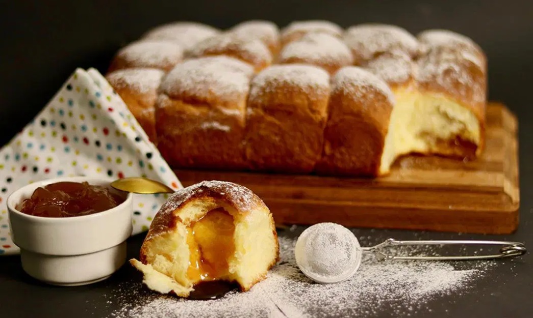 Na vsak kvadrat položimo žlico čvrste marmelade. Zgornji in spodnji sloj testa položimo čez marmelado, nato zvitek vzamemo v roke in spodvihamo desni in levi konec ter ga postavimo v pekač tako, da so spodvihani konci spodaj.