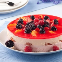 Odlična jogurtova torta, ki jo lahko pripravimo s katerimkoli sadjem, naša pa je iz pomaranč, malin, jagod in robidnic.