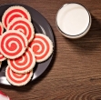 Odstranimo še zgornjo plast papirja in obrežemo robove, da bodo enakomerni. Začnemo zavijati v svaljek, spodnji papir sproti odstranjujemo. Tako dobljen svaljek zavijemo v plastično folijo in postavimo za eno uro v hladilnik, da bomo testo lažje narezali.