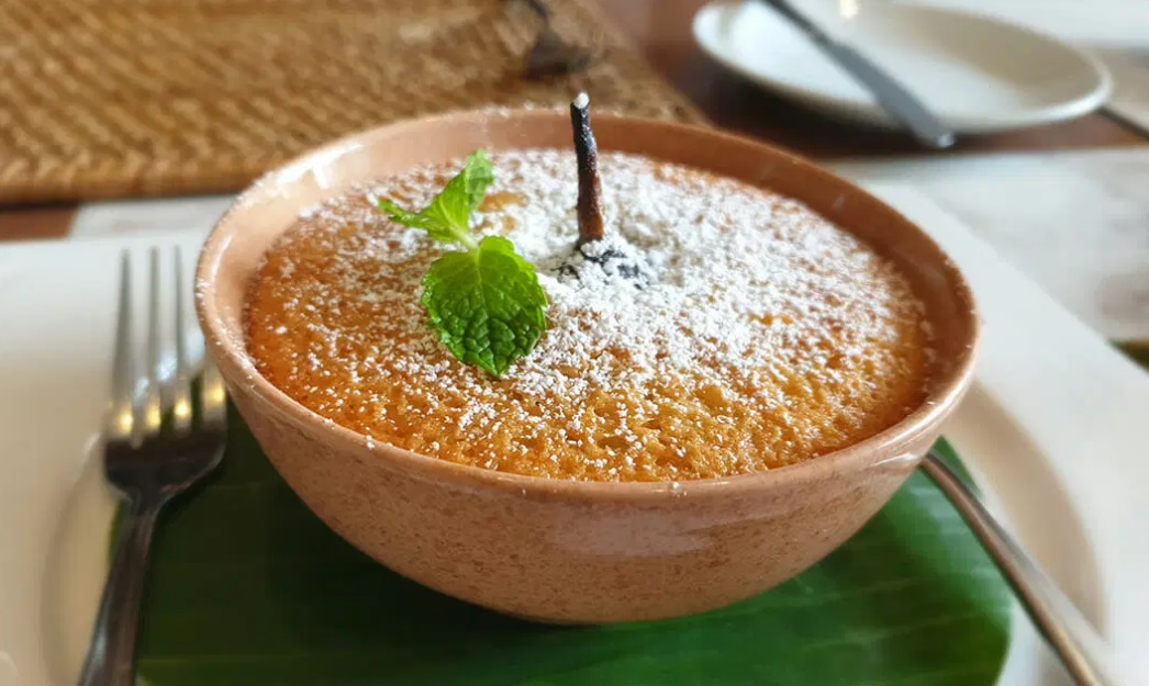 Pekač namažemo z maslom in potresemo z ostro moko. Mase mora biti v pekaču vsaj za 1 centimeter. Povrh potresemo kristalni sladkor in pečemo v pečici na 180°C okoli 45 minut.
