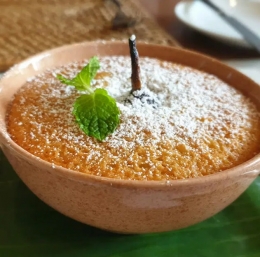 4 jajca 6 dag moke 8 dag sladkorja 4 dag orehov 4 dag masla 2 jedilni žlici zdrobljenih keksov cimet limonova lupina rum 4 dcl kuhanega belega vina sladkor