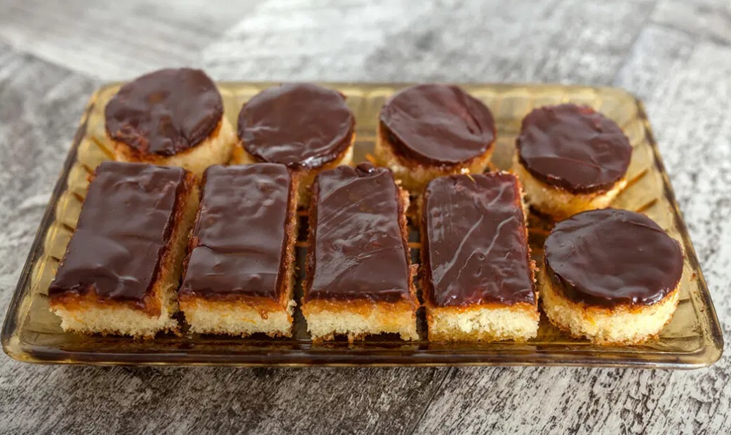 5 dkg sladkorja 1 dcl prekuhane in ohlajene vode 2 pomaranči čokoladna glazura – 200 g jedilne čokolade in 1 žlica masla
