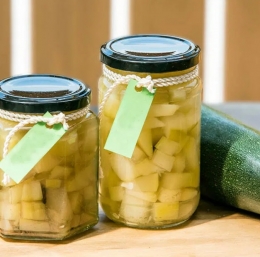 Kozarce za vlaganje temeljito operemo in postavimo za 10 minut v ogreto (100°C) pečico, da jih steriliziramo.