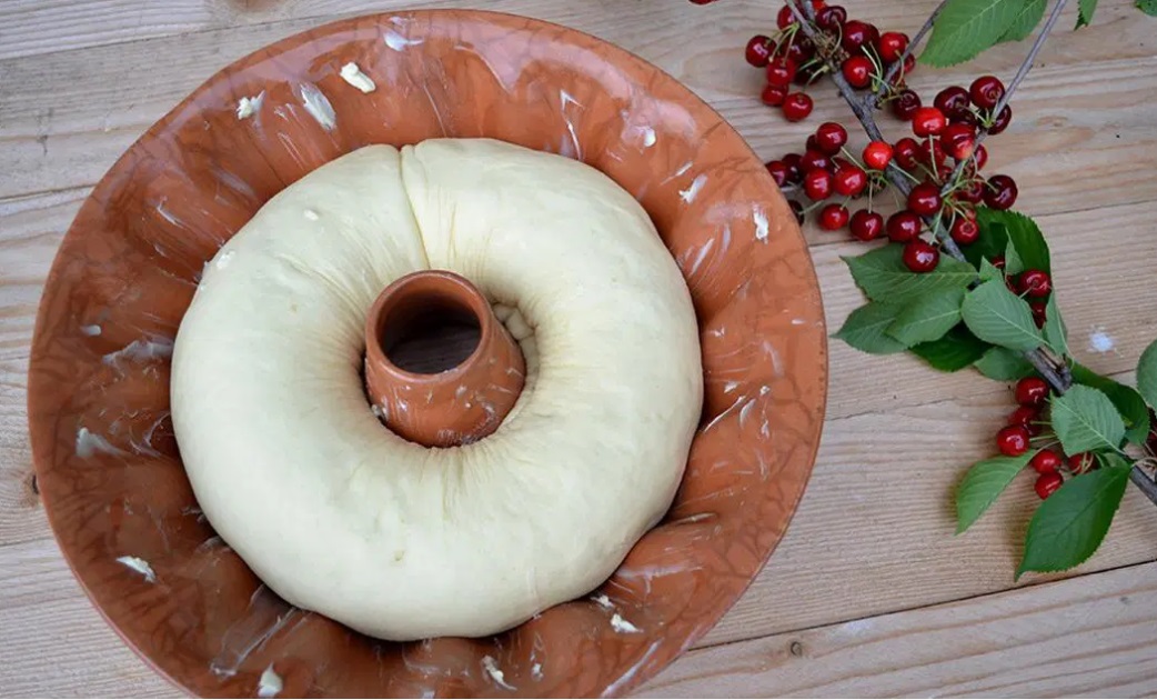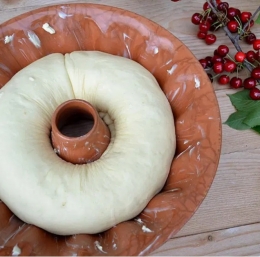 Nato testo zvijemo in položimo v dobro namazan model, da vzhaja. Sedaj ga premažemo s stepenim beljakom in pečemo v srednje vroči pečici 1 uro.