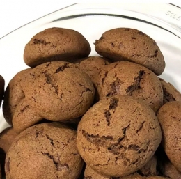 Nato počasi z lopatko vmešamo dobljeno maso v suhe sestavine. Dobimo svetlečo zmes, ki jo takoj z roko oblikujemo v kroglice in pečemo v ventilacijski pečici na 160 °C približno 12 minut na peki papirju.
