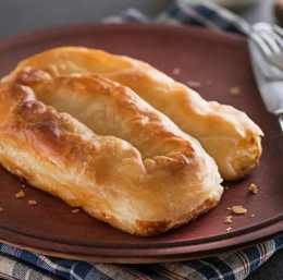 Pečemo približno 45 minut pri 200 stopinjah. Na koncu zavitek premažemo s kislo smetano in vrnemo v pečico za 10 minut.