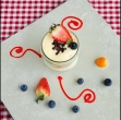 3 rumenjaki 240 ml smetane za stepanje 120 g sladkorja 60 ml medu 1 žlička vaniljevega ekstrakta 1 žlica vodke ali žganja 900 g skute 60 g masla 50 g narezanih mandljev 150 g narezanega mešanega kandiranega in suhega sadja