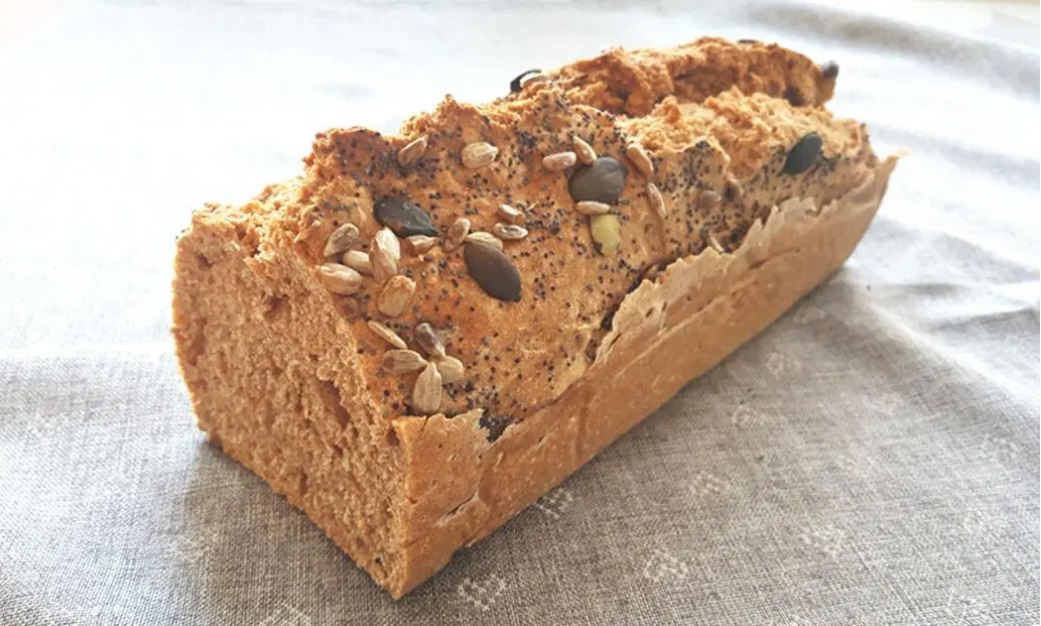 V podolgovat pekač za kruh položimo peki papir in ga napolnimo z maso. Pozor, ta ni kepasta kot kvašeno testo in ni čisto tekoča. Posujemo z nekaj semeni in takoj postavimo za eno uro v ogreto pečico na 200 °C.