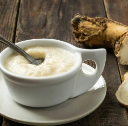 kos starega kruha 1 dcl goveje juhe 1-2 žlici naribanega hrena