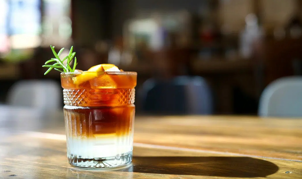 V večji kozarec damo nekaj ledenih kock, eno merico gina, prelijemo z eno merico kave in dvema mericama tonika.