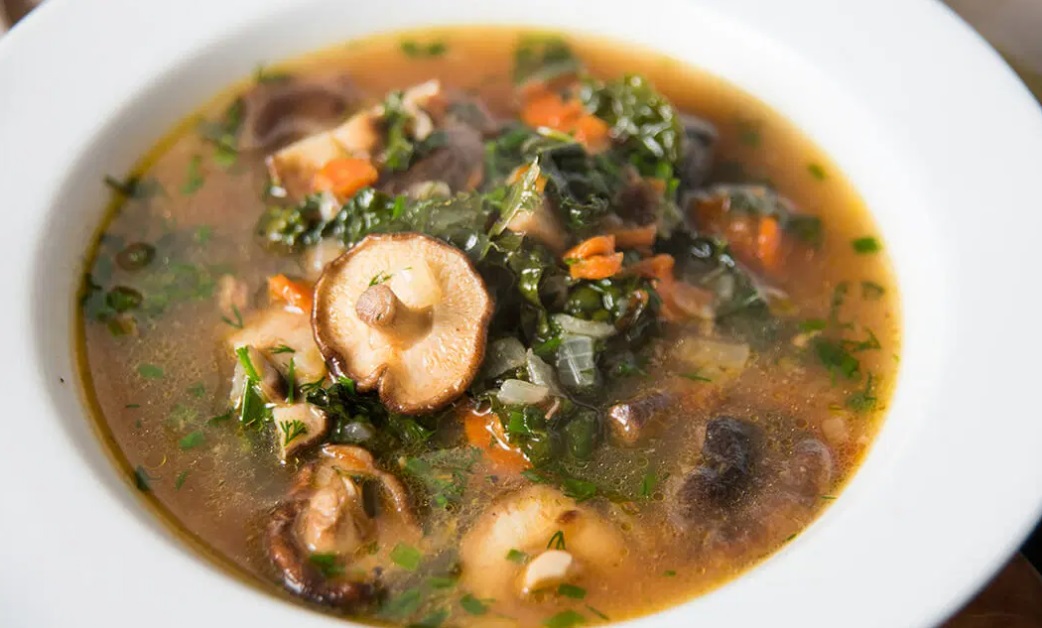 Zelenjavo operemo in nasekljamo. Gobe očistimo, operemo pod tekočo vodo, posušimo s papirnato brisačko. Velike gobe prerežemo na pol, majhne pustimo cele.