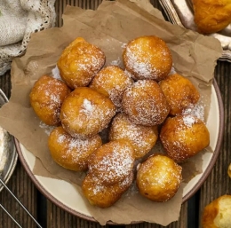 Ko se fritule zlato obarvajo, jih vzamemo iz olja, odcedimo in še vroče potresemo s sladkorjem v prahu.