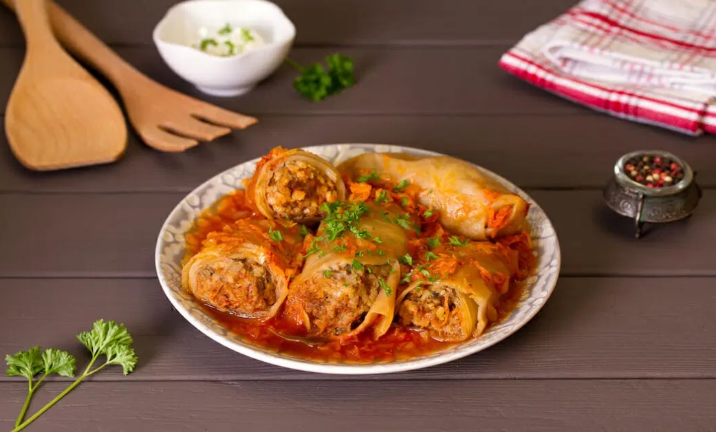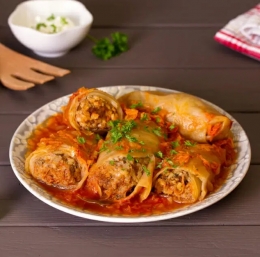 Zeljne liste previdno odstranimo z glave in jih napolnimo z riževim nadevom, dobro zavijemo in prepičimo z zobotrebcem ter kuhamo 40 min.