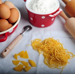 Dodajamo po kapljicah, saj se lahko hitro zgodi, da je premokro. Ko je testo pripravljeno, ga z valjarjem ali s strojčkom za testenine razvaljamo na 10–15 cm široke trakove. Debelina je odvisna od naših želja. Jaz imam raje tanjše rezance, nekateri imajo raje debelejše.