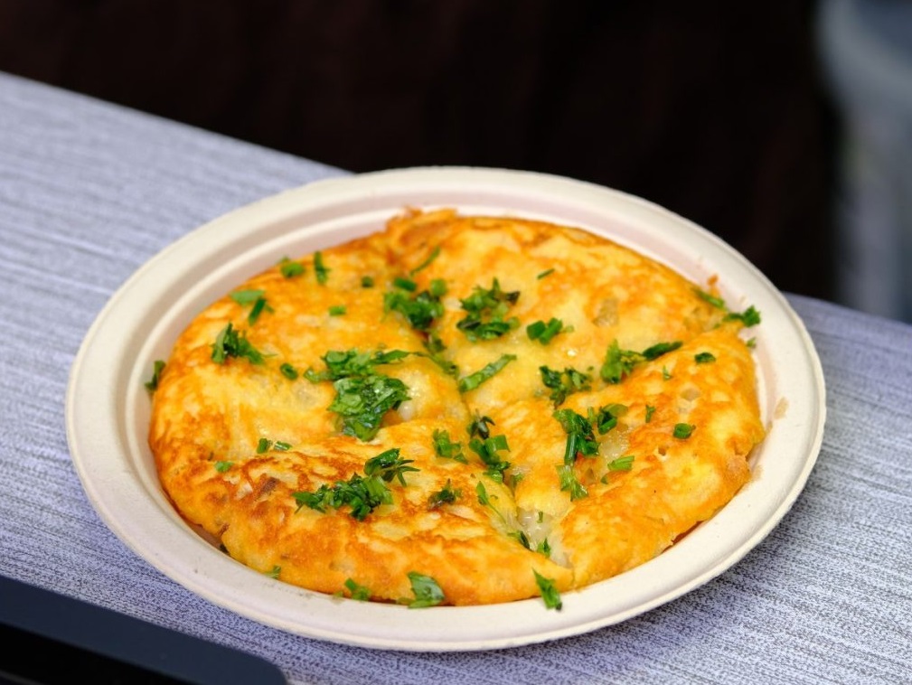 Obrnemo, in ko se enako zapeče tudi na drugi strani, je jed nared. Čas pečenja je od 12 do 15 minut, odvisno pač od velikosti posode in količine sestavin.