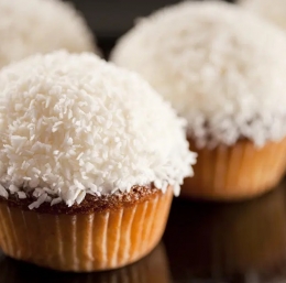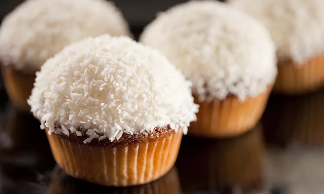 Belo čokolado in maslo stopimo nad vodno kopeljo in z metlico vmešamo v mascarpone, dodamo tudi oba sladkorja. Kapice ohlajenih mafinov pomakamo v kremo in zatem še v kokos. Če ostane kaj kreme, jo ponudimo zraven. Če želimo, lahko v kokos vmešamo tudi nekaj mletih mandljev.