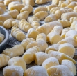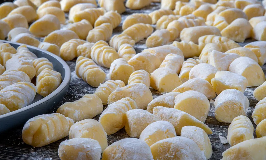 Delovno površino pomokamo, krompirjevo testo pa razvaljamo v dolge svaljke, široke okoli 2 centimetra. Z ostrim nožem jih razrežemo na njoke. Malo jih pomokamo in pustimo, da se nekaj minut “spočijejo”.