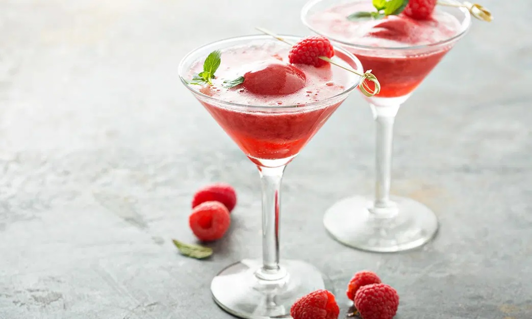 Sorbet pripravimo tako, da v vsak kozarec damo kepico malinove zmrzline, 0,3 dl vodke, 1 dl penečega vina, nekaj malin in lističev mete.