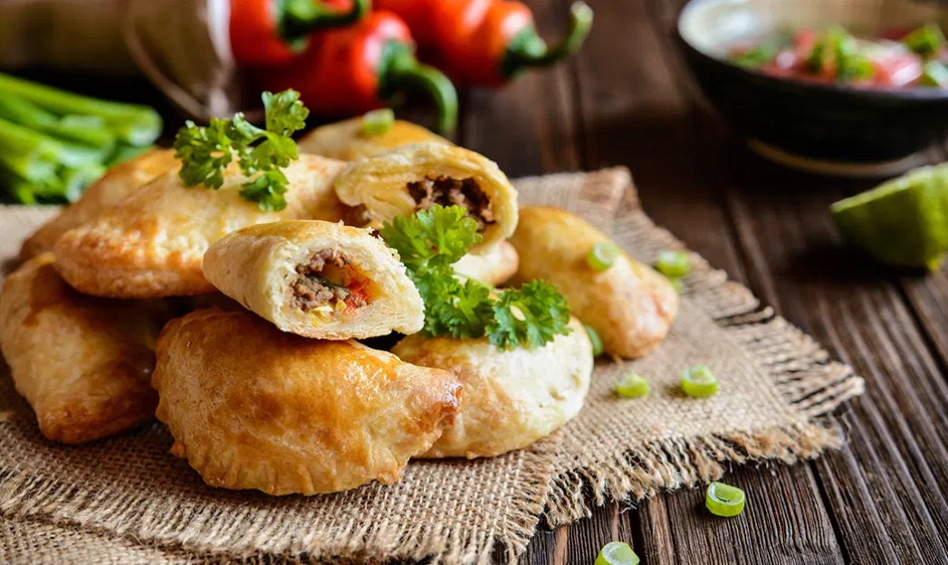 Izdolbemo 25 krogov s premerom 10 cm. Robove namažemo z beljakom. Na vsak krog naložimo žlico nadeva, kroge prepognemo in dobro zatisnemo robove., pomagamo si z vilicami.
