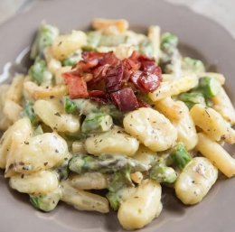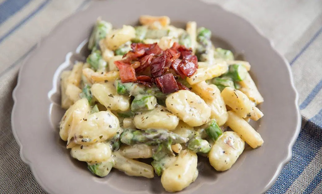 KUHINJA.COM | Njoki iz sladkega krompirja s pršutom in šparglji ...
