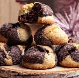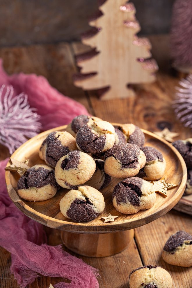 Obe piškotni testi oblikujemo v kepo, ju tesno zavijemo v folijo in postavimo v hladilnik za vsaj 2 uri.