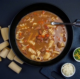 tudi jaz spasiram le del fižola in ga uporabim namesto moke za zgostitev. Česen dam kar kuhat v juho, ko je mehek, ga zmečkam. Namesto špagetov dam široke rezance, nalomljene na krajše koščke, nekateri dajo tudi žličnike (jaz tega ne maram).