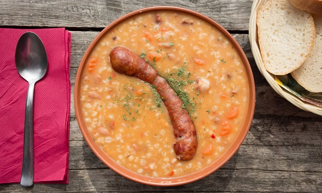 Ričet s klobaso je priljubljena zimska enolončnica, s katero se dobro najemo, pa še zdrava je. Ječmen je edina rastlina, ki v velikih količinah vsebuje vse vodotopne vitamine.