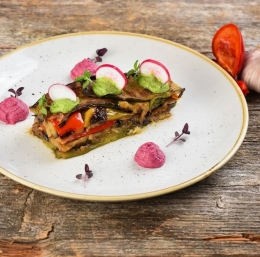 Vso zelenjavo narežemo na enako debele lističe. Na hitro jo pokuhamo v vroči jušni osnovi (2 minuti). Popopramo in na hitro popečemo na vročem olivnem olju. Vso zelenjavo zložimo po plasteh v pekač. Dodamo še rožmarin, pokapamo z dobrim oljčnim oljem in damo v pečico. Pečemo cca.15 minut na 200 stopinj. Proti koncu pečenja, pečico nastavimo na največjo moč in vključimo samo zgornje pečenje, da dobimo lepo hrustljavo zgornjo plast.