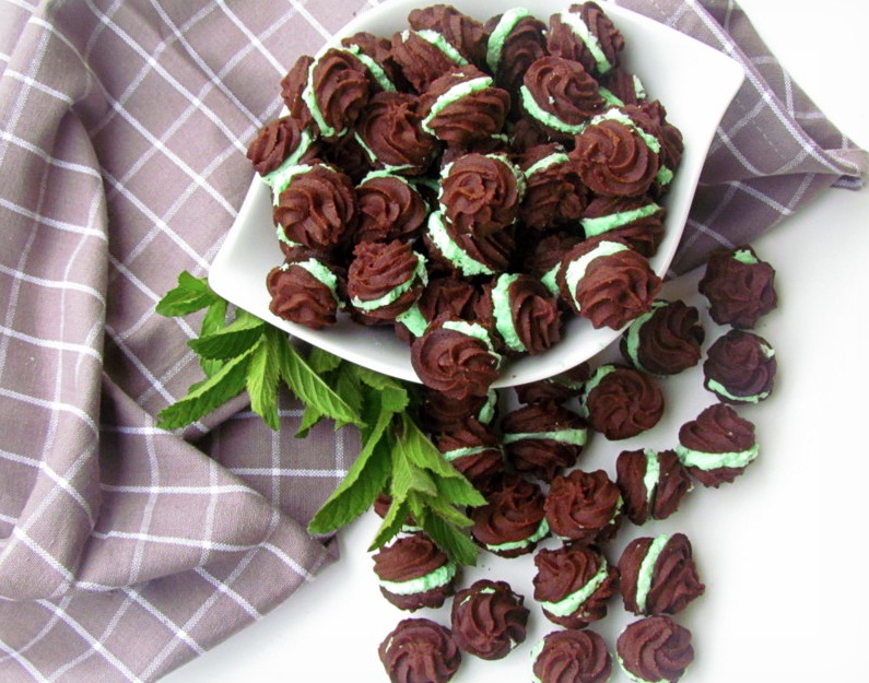 Čokoladno mint piškoti, katere priprava je zelo hitra in enostavna, namreč testo se brizga.