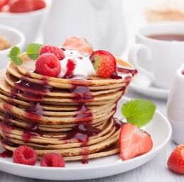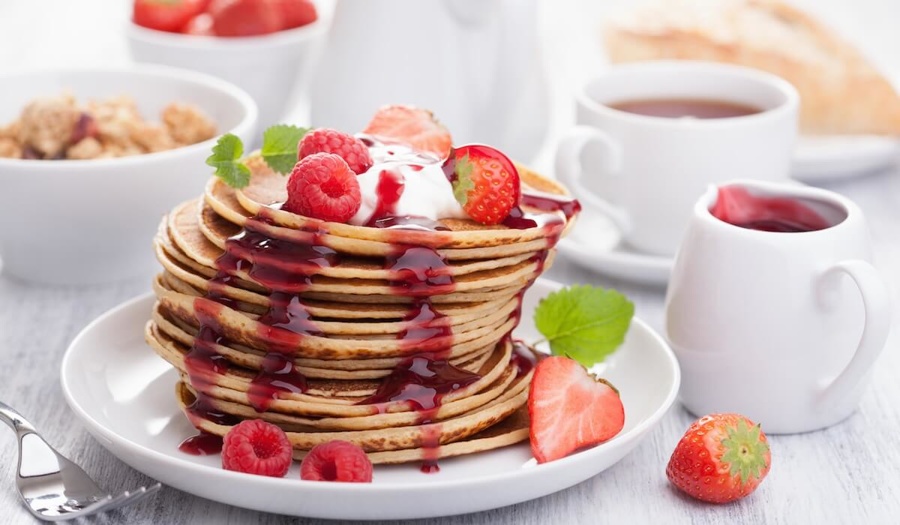 Ameriške palačinke so vedno dobra ideja, še posebej dobra pa so na jutro, ko se nam nikamor ne mudi in se imamo čas razvajati. Tokrat predstavljamo recept za sočne palačinke z jagodnim prelivom.