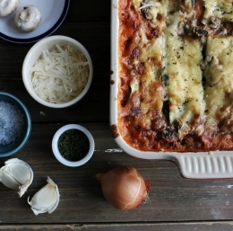 Počakajte 10 minut, preden lazanjo narežete in postrežete, da se plasti nekoliko strdijo.