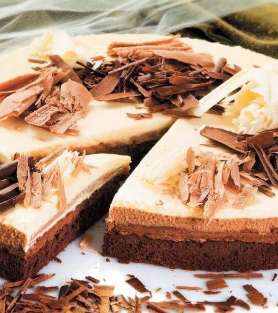 Naša najbolj čokoladna torta je sestavljena iz 3 različnih vrst kremastega moussa.