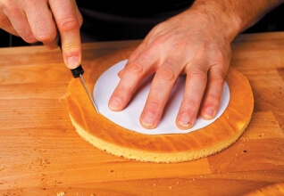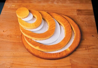 Iz ene biskvitne plošče dobimo po 4 obroče in sredinski krog.