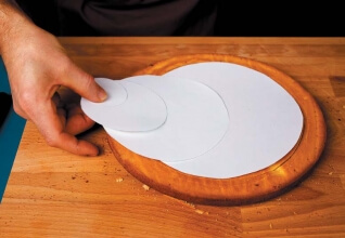 Nato sestavimo šahovnico tako, da iz 3 svetlih in 2 temnih obročev sestavimo prvo ploščo (začnemo s svetlim obročem) ter jo premažemo s četrtino nadeva.