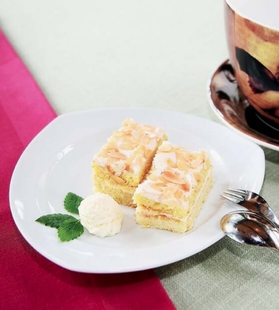 Nebeške rezine lahko okrasimo z lističi mete in zraven ponudimo stepeno sladko smetano.