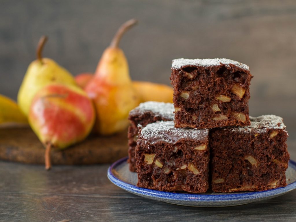 Testo damo v pekač in ga poravnamo. Hruške narežemo na rezine in z njimi obložimo testo, nekaj jih prihranimo za okras. Pekač damo v ogreto pečico in pečemo 35 minut. Ko je testo pečeno, pekač preložimo na mrežico, da se ohladi.