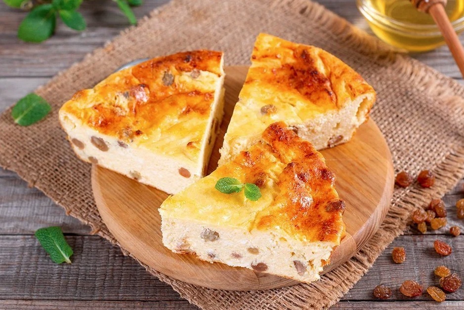 V skledi dobro premešamo suhe sestavine, in sicer moko, pecilni prašek ter sladkor. Rozine v posebni posodi operemo in odcedimo, vendar pustimo nekoliko navlažene zaradi večje sočnosti. V skledi zamešamo domačo skuto in jajce ter po okusu dodamo malo limonine lupinice. V zmes primešamo še rozine.