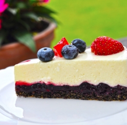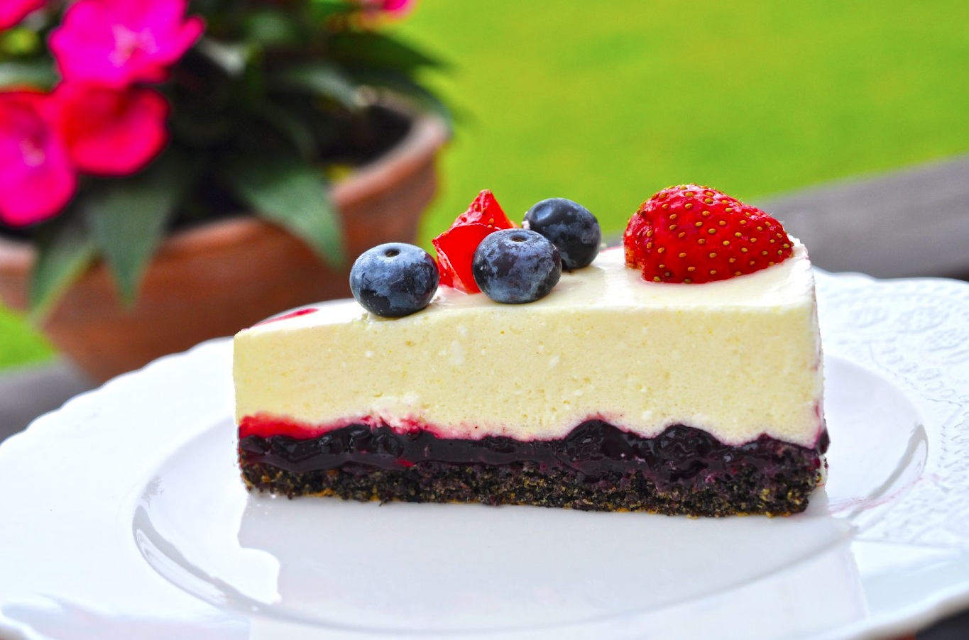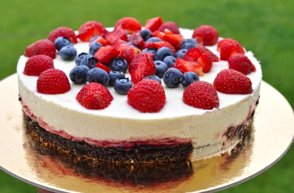 KUHINJA.COM | Lahka poletna jogurtova skutna torta z aronijo in jagodičevjem ...