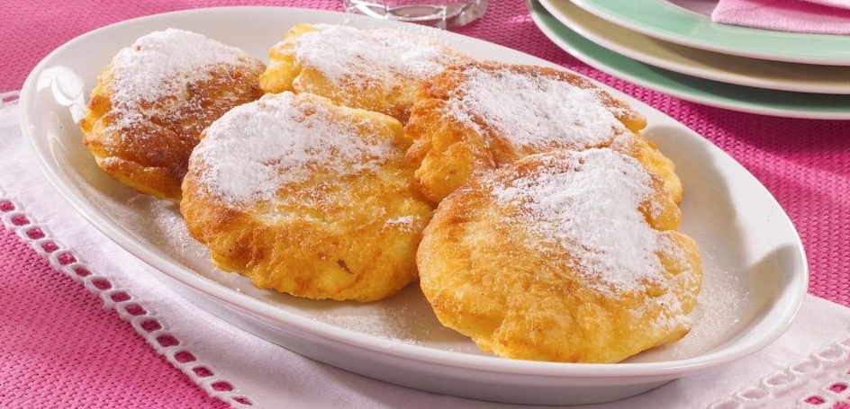 250 g skute 4 jajca 4 žlic mleka 2 žlici ruma 200 g moke žlička pecilnega praška (zvrhana) 2 vrečki vaniljevega sladkorja olje za peko palačink sladkor v prahu za posip