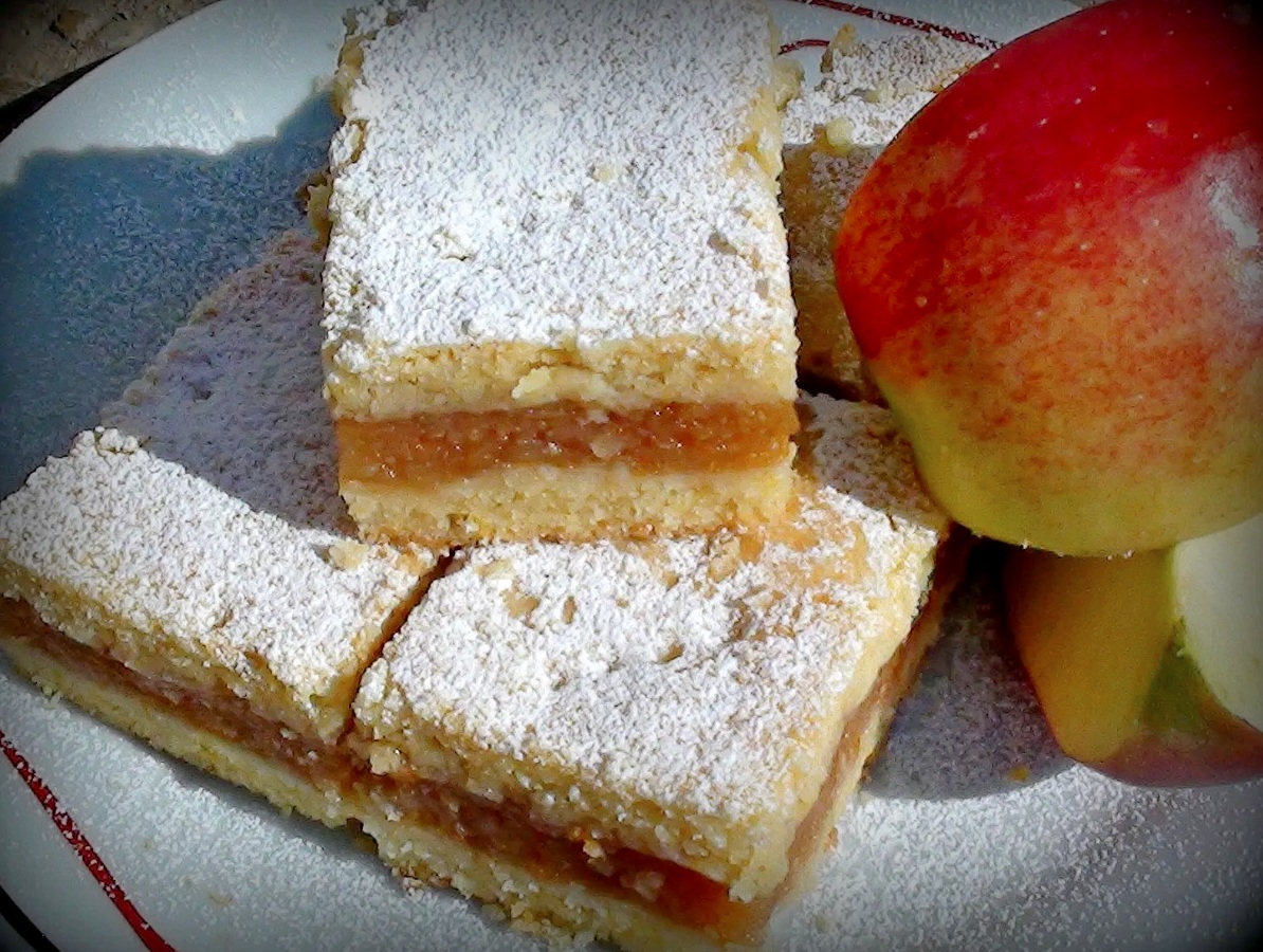 Kos testa položimo v pekač. Premažemo ga z jabolčnim nadevom, ki ga pokrijemo z drugim kosom testa; gl. različice. Testo dokaj na gosto prešpikamo z vilicami, potem pa pekač položimo v pečico, da se testo zlato obarva. Pečeno pito ohladimo vsaj do mlačnega.